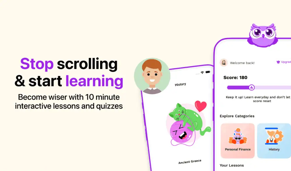 Tired of mindlessly scrolling through social media? Wiser5 Bite-Sized transforms your downtime into learning time with fun and engaging 5-10 minute interactive lessons and quizzes.