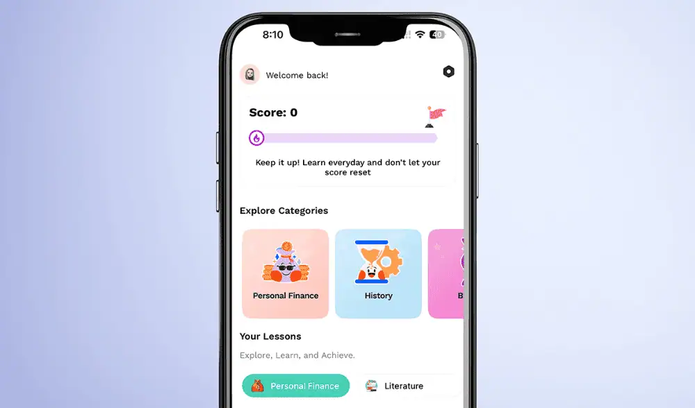 Short, Interactive Lessons: Engage with 5-10 minute lessons and quizzes across various subjects.