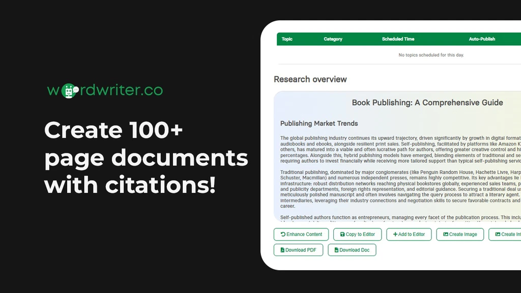 Wordwriter’s AI Research Agent gathers and analyzes information quickly, so you can make data-driven content decisions without the manual effort.