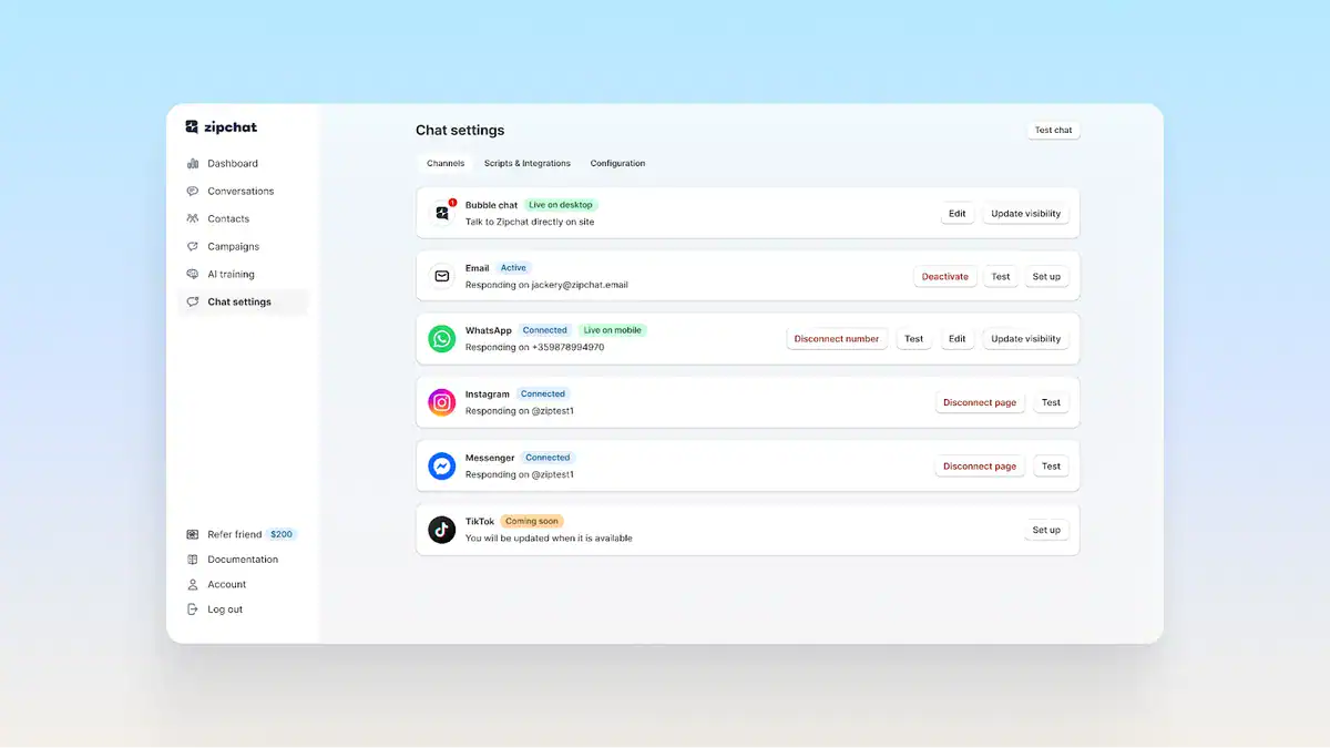 Zipchat AI – Use this AI agent to handle pre- and post- sales conversations across chat, email, and social 24/7